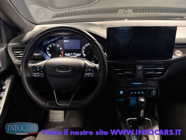 VETTURA PROPOSTA IN VERSIONE 1.0 ECOBOOST DA 155 CON TECNOLOGIA MILD HYBRID, ALLESTIMENTO SPORTIVO ST LINE, CAMBIO AUTOMATICO, ACCESSORIATA CON FARI FULL LED, SYNC 4 CON SCHERMO DA 13,2": IL GRANDE DISPLAY TOUCH CENTRALE CON NAVIGATORE, RADIO DAB E MIRRORING WIRELESS PER APPLE CARPLAY E ANDROID AUTO, CLIMATIZZATORE AUTOMATICO BI-ZONA, SEDILI SPORTIVI, KEYLESS START, PRE-COLLISION ASSIST, SENSORI DI PARCHEGGIO CON TELECAMERA, LANE KEEPING SYSTEM, FORD PASS CONNECT.